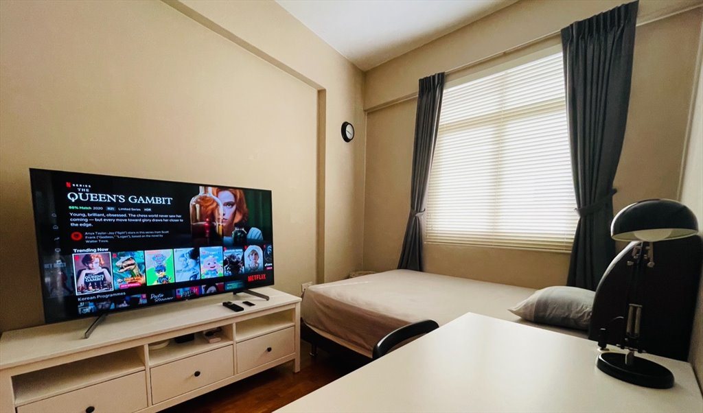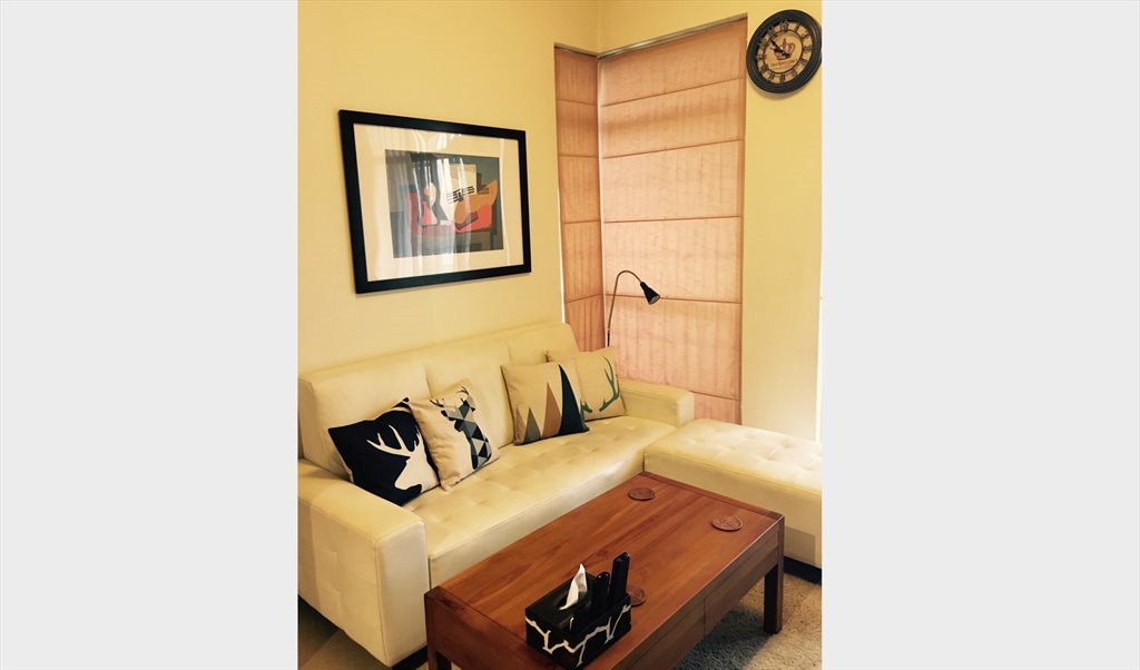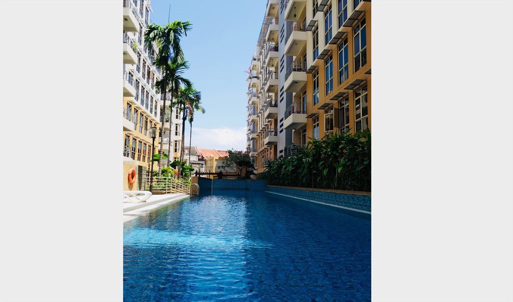 The room comes with a queen-size bed, wardrobe, aircon, smart TV, study table and lamp. No one is sharing the bathroom. The condo has a balcony with pool view. Condo facilities include swimming pool, jacuzzi, gym and BBQ pits.
