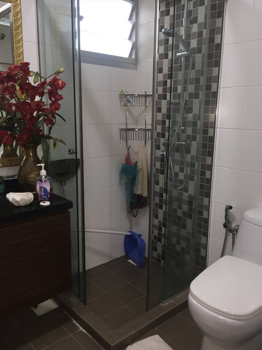 This room is luxuriously and fully furnished and is tucked away in a HDB flat without any traffic noise. The room has a large, oak wardrobe with a spacious computer table, wireless broadband, and spacious bed. It has parquet laminated flooring and high ceiling. Though it is a common room it has a newly renovated bathroom just outside. Access to newly renovated kitchen. There is a sink for washing and washing machine with dryers in a large, sunlit area at the backyard. So there is absolute privacy and quiet.