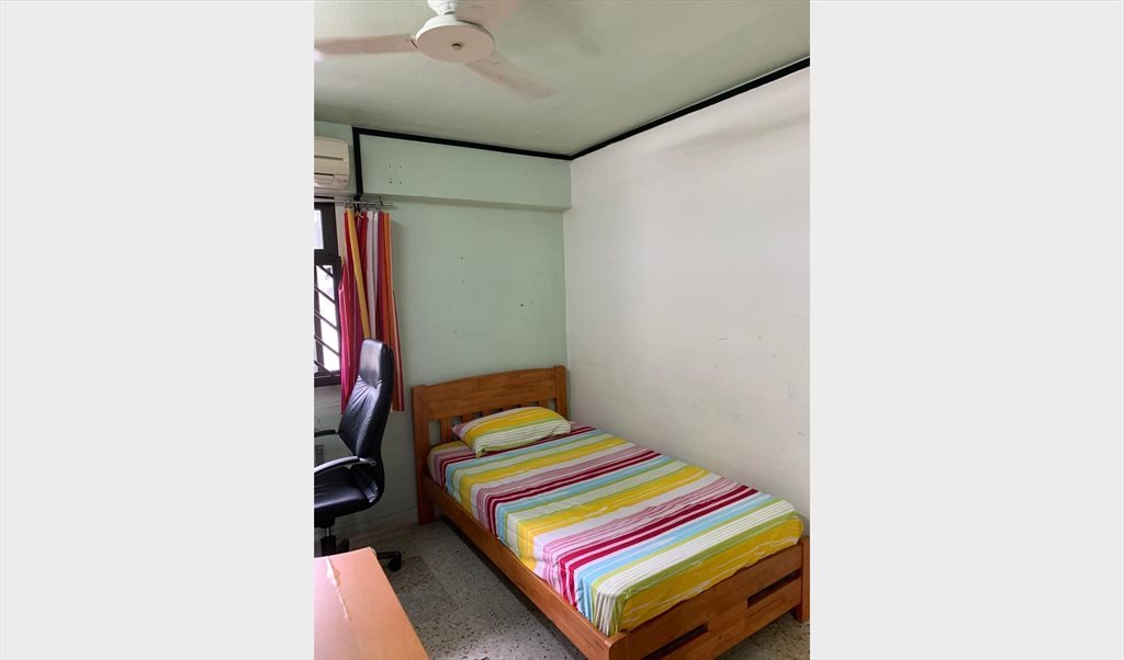 Single bed, wardrobe, table, chair, ceiling fan provided,
