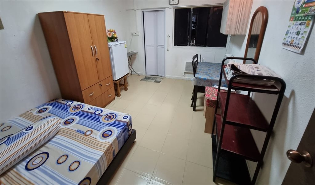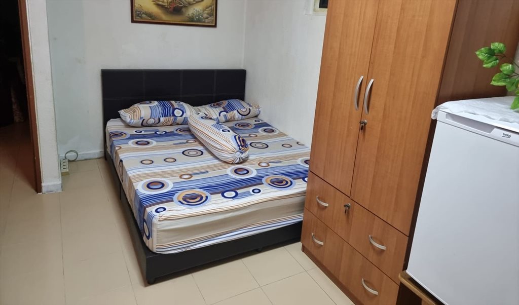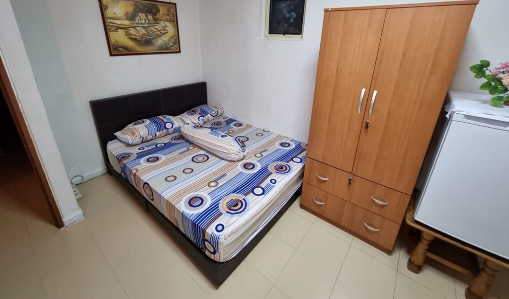 Queen size bed, wardrobe, table, chair, standing fan, small fridge provided,