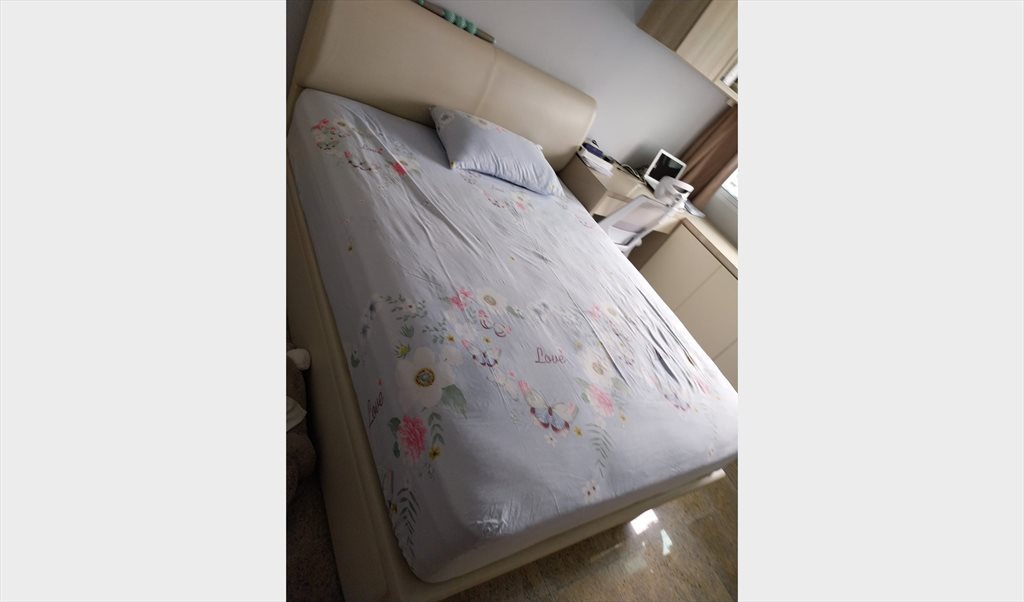 Queen size bed, wardrobe, table, chair and standing fan provided,