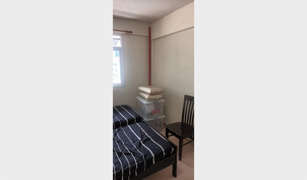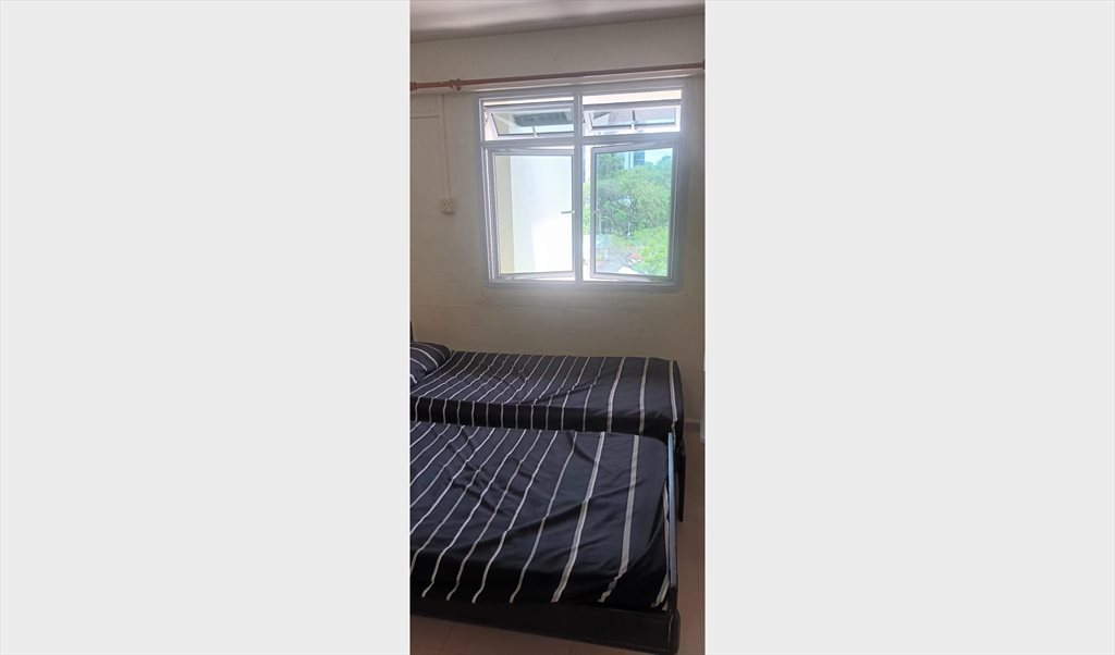 Two single beds, build in wardrobe, table, chair, standing fan provided,