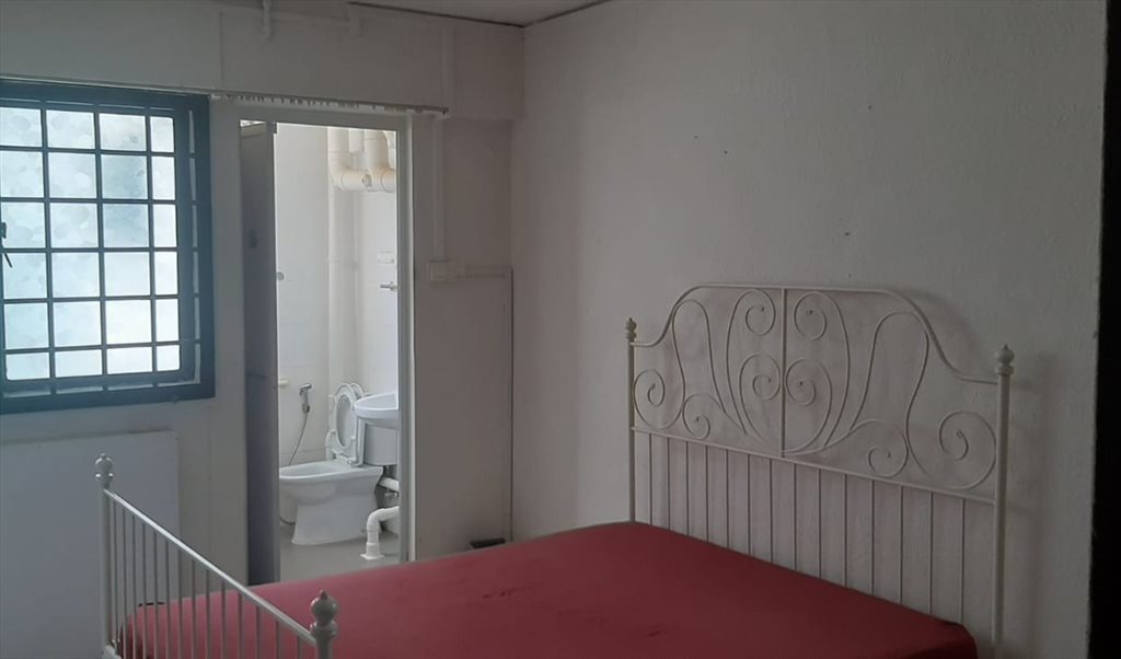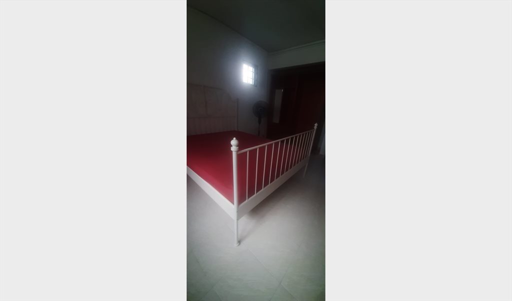 Queen size bed, wardrobe, table, chair and standing fan provided,