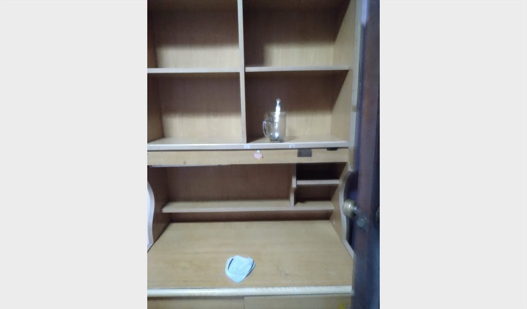 Queen size bed, wardrobe, table, chair and standing fan provided,
