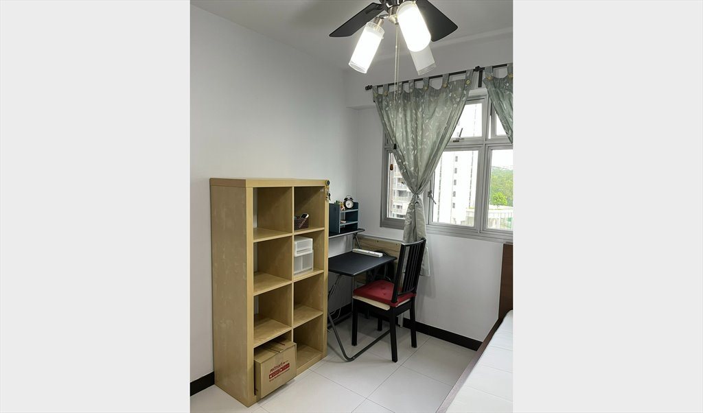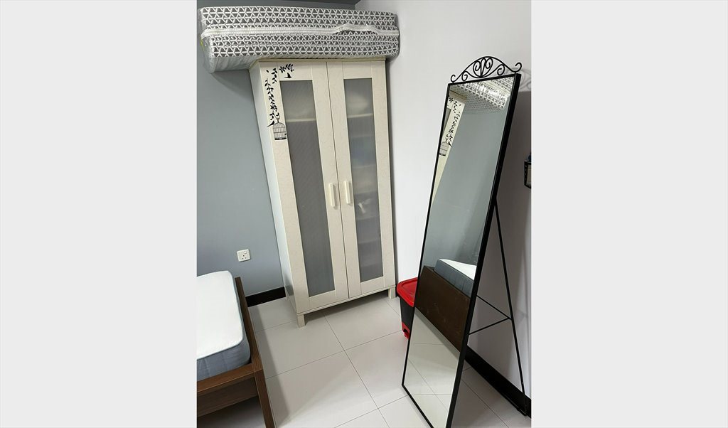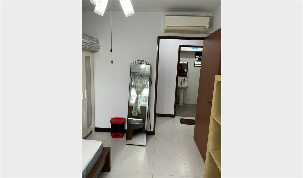 The room is for rent at S$850 inclusive of utilities. This room comes with WiFi ,ceiling fan and air-conditioning. The room is fully furnished; it has a single bed, a full length mirror, shelves, tables, chair, shelves and a wardrobe.