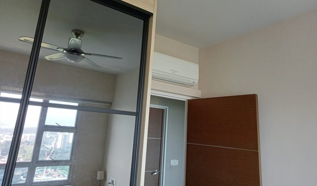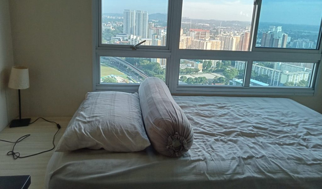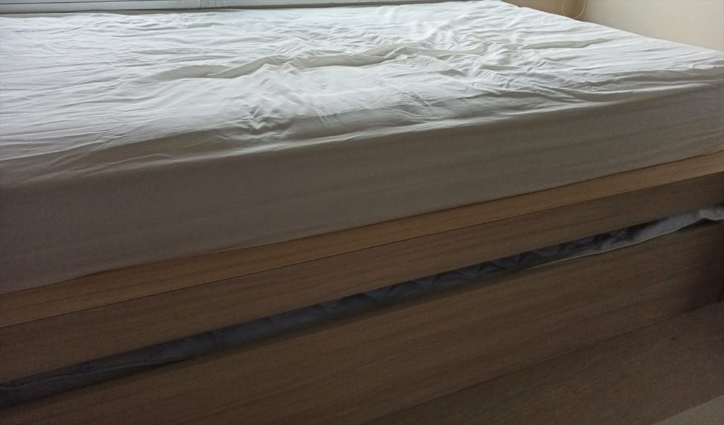 Single bed (attached to the wall), underneath there is another bed, wardrobe, table, chair and ceiling fan provided,