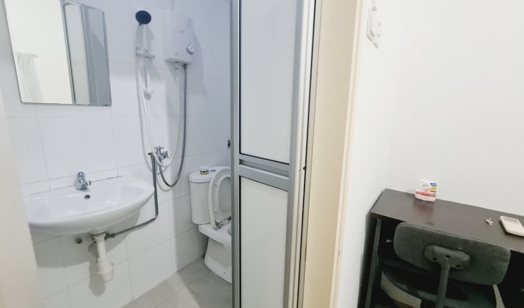 Personal bathroom for showering and wash basin and toilet bowl. Personal fridge.