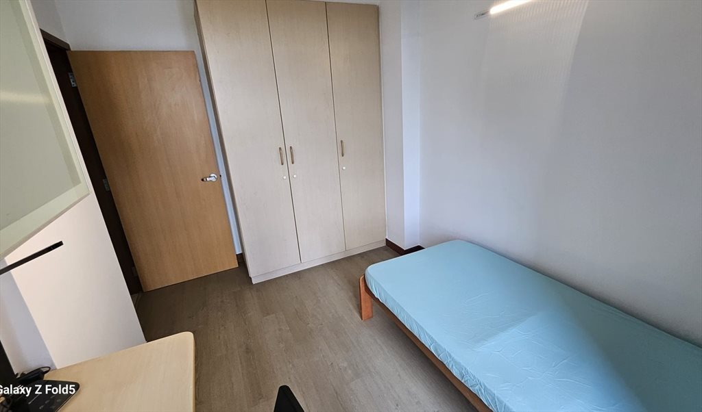 • Fully furnished: Single bed, built-in wardrobe, study desk + chair.