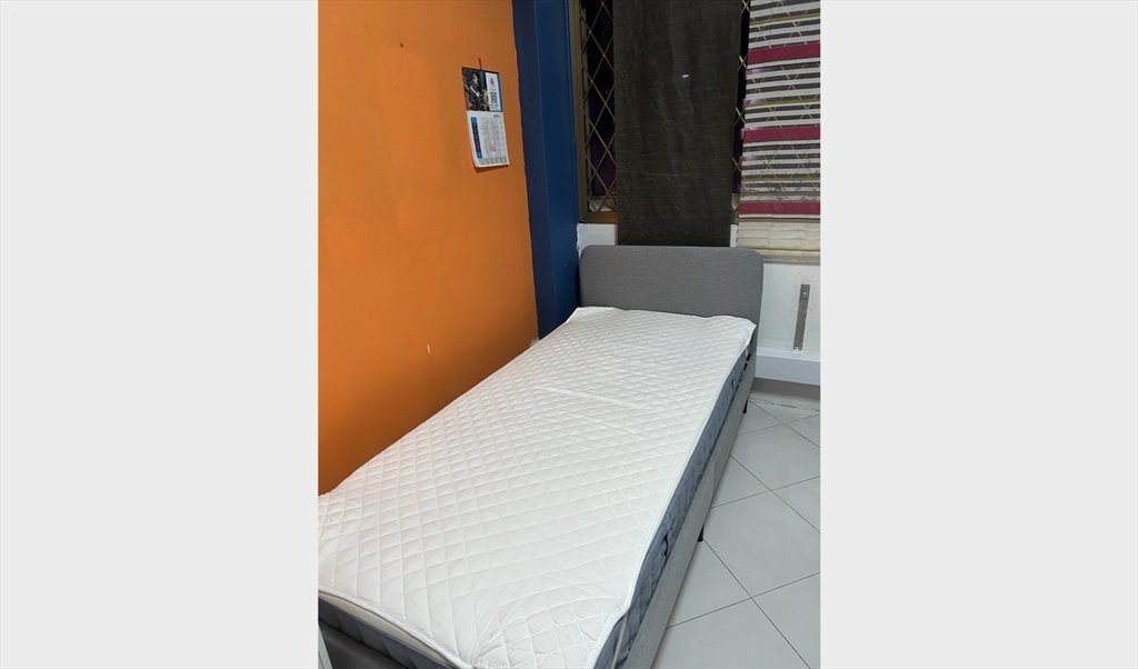 Single (or two) beds, wardrobe, table, chair, standing fan provided,