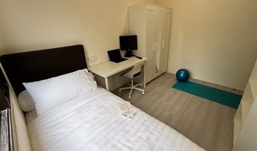 Spacious room with high ceiling (2.8m from floor to drop-down ceiling). Newly renovated and fully furnished with Daikin air-condition, 10“ pocketed single spring mattress with duvet and “Cloud Soft Embroidered” linens, three door wardrobe and 1.2m adjustable height desk (telescopic legs).