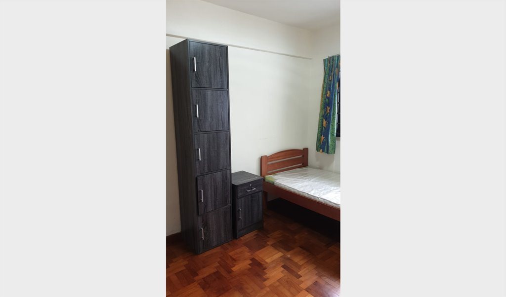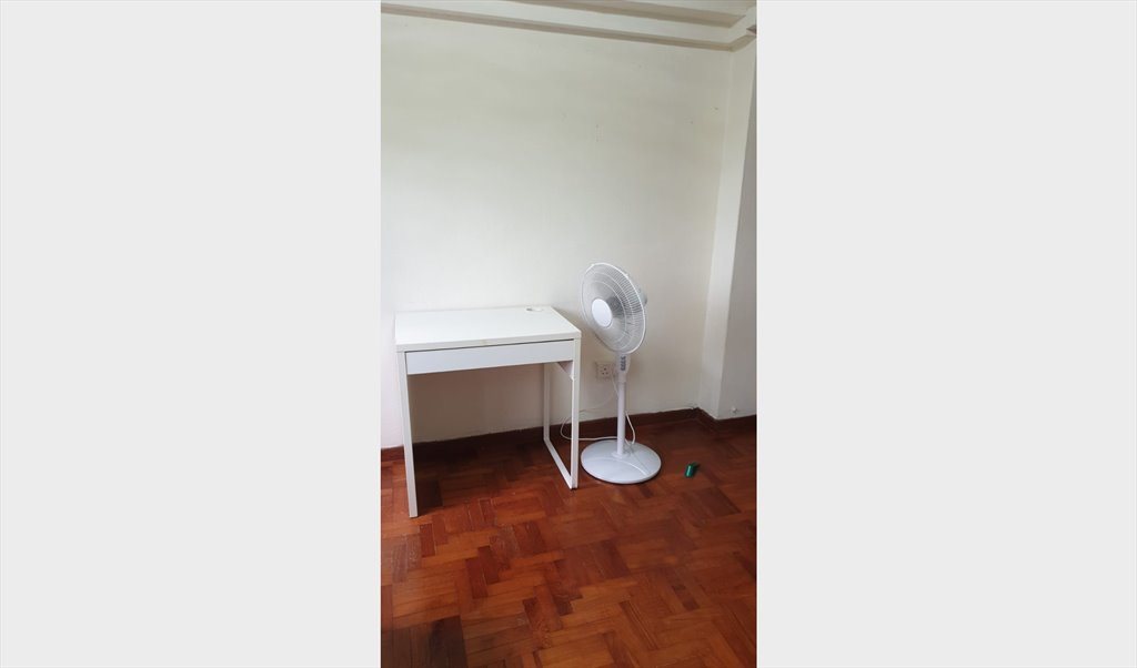 Single bed, wardrobe, table, chair, standing fan provided,