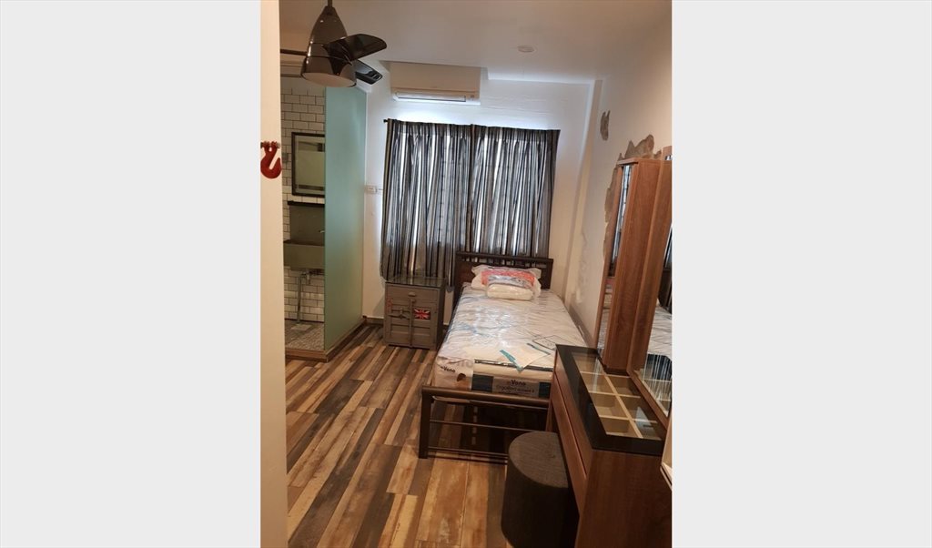 Single size bed and large wardrobe and study table, washing machine and dryer,stove and hood and huge fridge included.