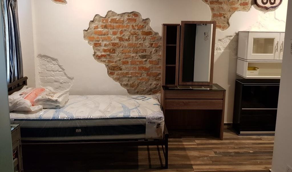 New single bed and wardrobe and dressing table, washing machine ,stove and hood and huge fridge included.