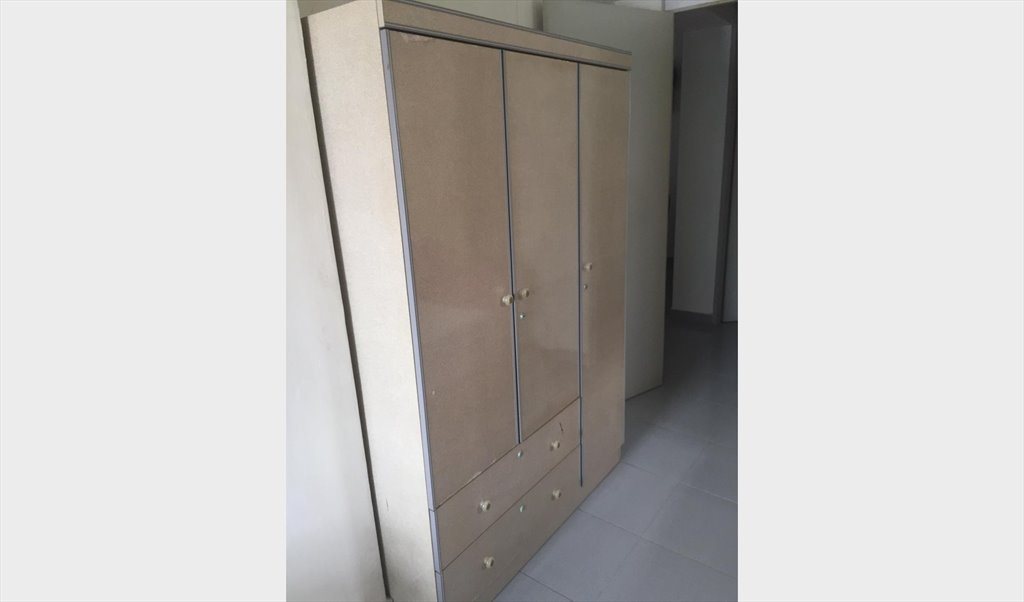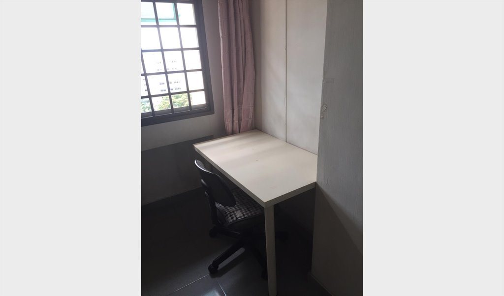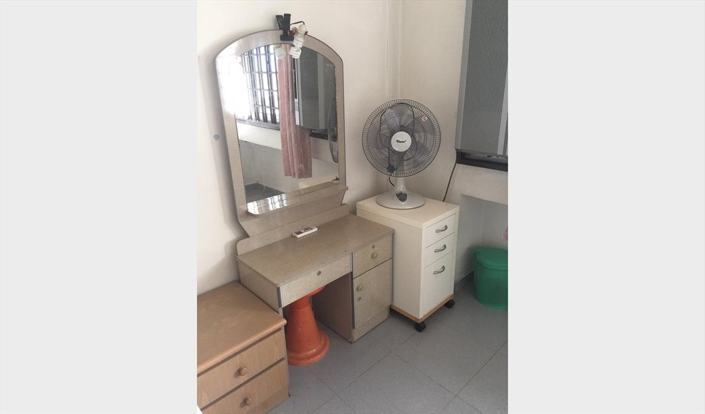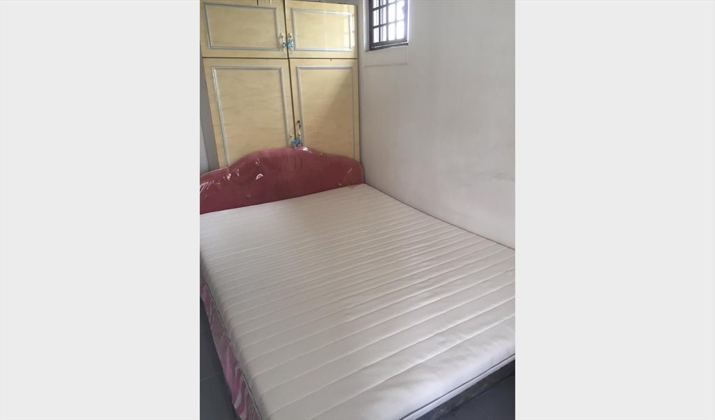 Queen size bed, wardrobe, table, chair, standing fan provided,