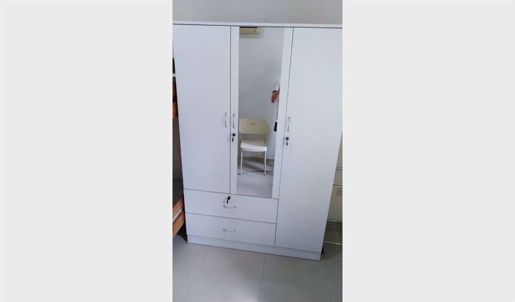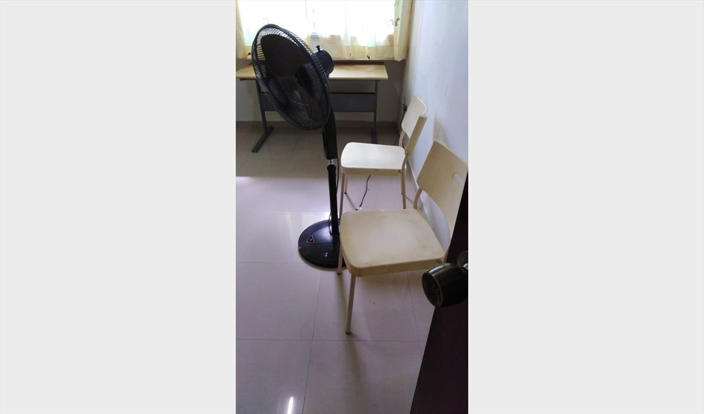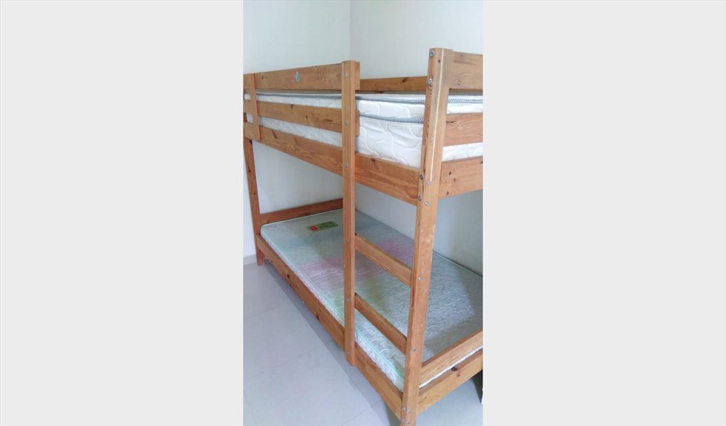 Double decker bed, wardrobe, table, chair, standing chair provided,