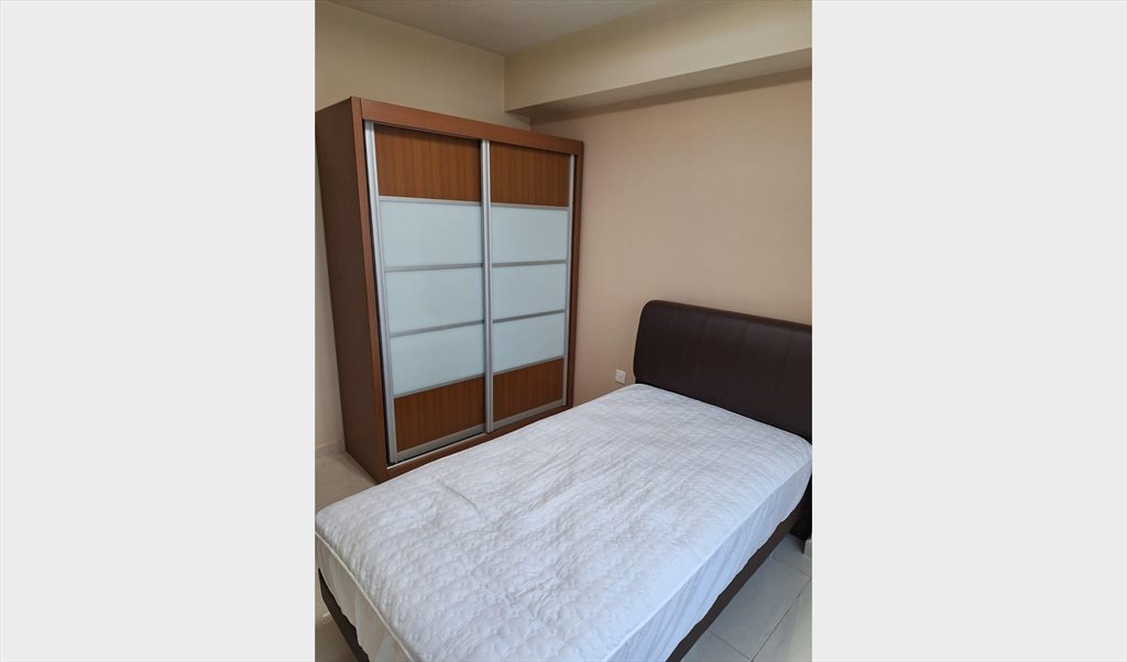 Single bed, wardrobe, table, chair, standing fan provided,
