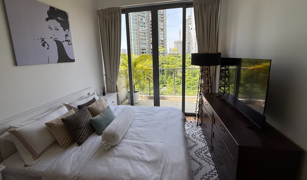 An excellent en suite fully furnished bedroom with plenty of storage, 55" smart TV and large balcony access in the beautifully green and quiet luxury Mon Jervois condo (stunning pool and gym) in walking distance (7 mins) to Valley Point shopping centre.