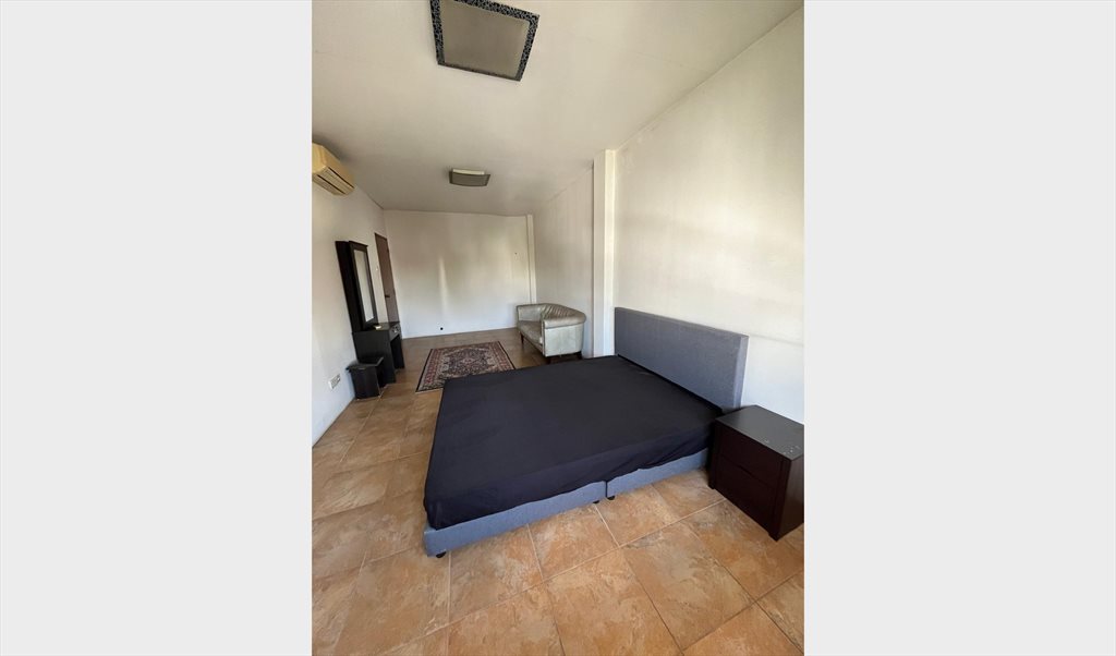 Queen size bed, wardrobe, table, chair, ceiling fan provided.