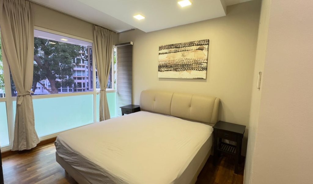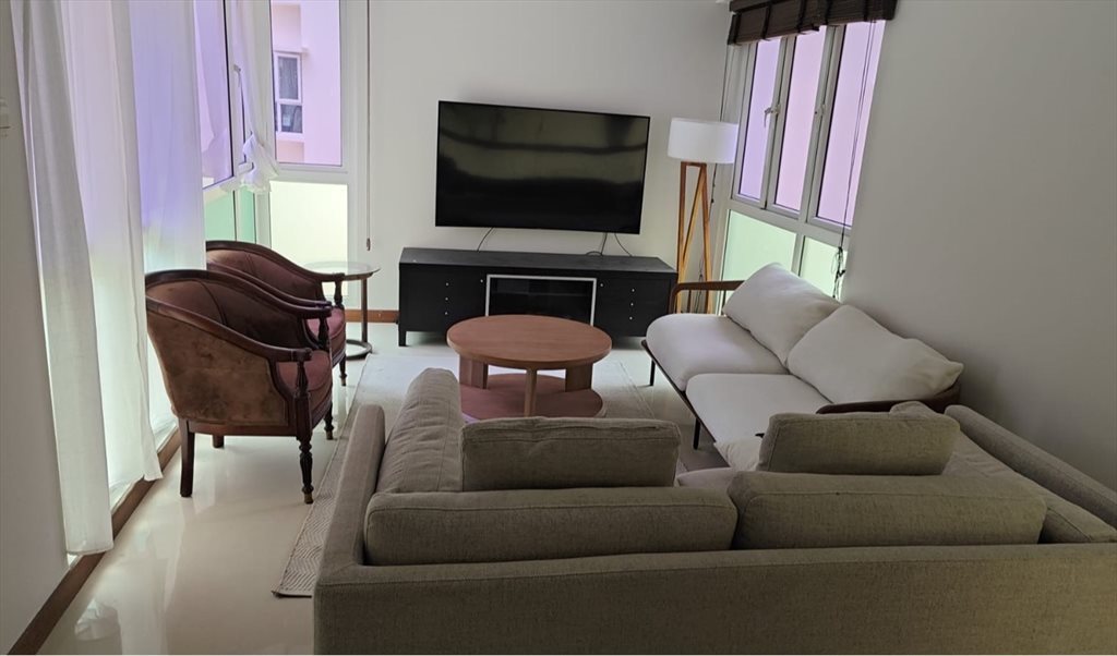 Level 3, morning sun, this unit has 3 good size rooms; open study area; walk-in wardrobe and bomb shelter. Available from 1st Oct. Fully furnished with white goods,