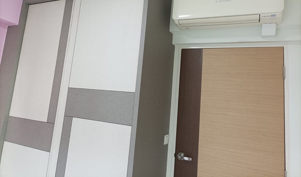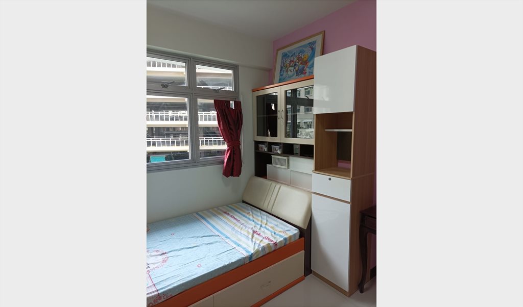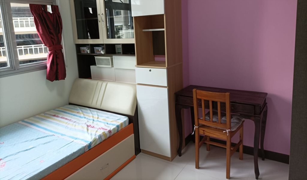 Super single bed (underneath another bed), wardrobe, table, chair and 2 standing fans provided,