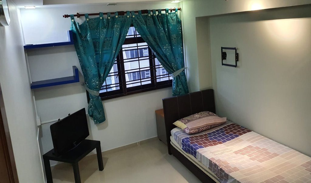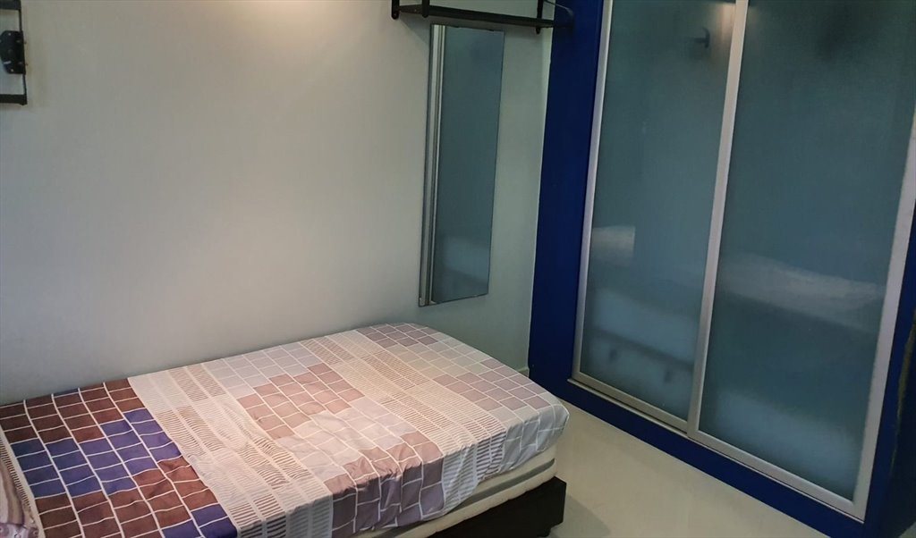 2 single beds, wardrobe, table, chair, ceiling fan provided,