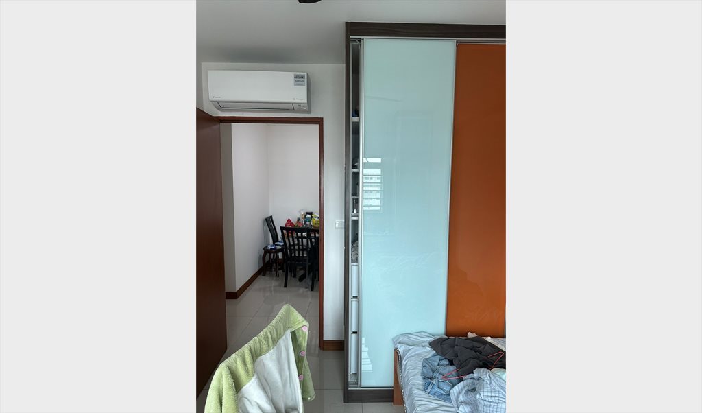 Single bed, wardrobe, table and chair, ceiling fan provided.