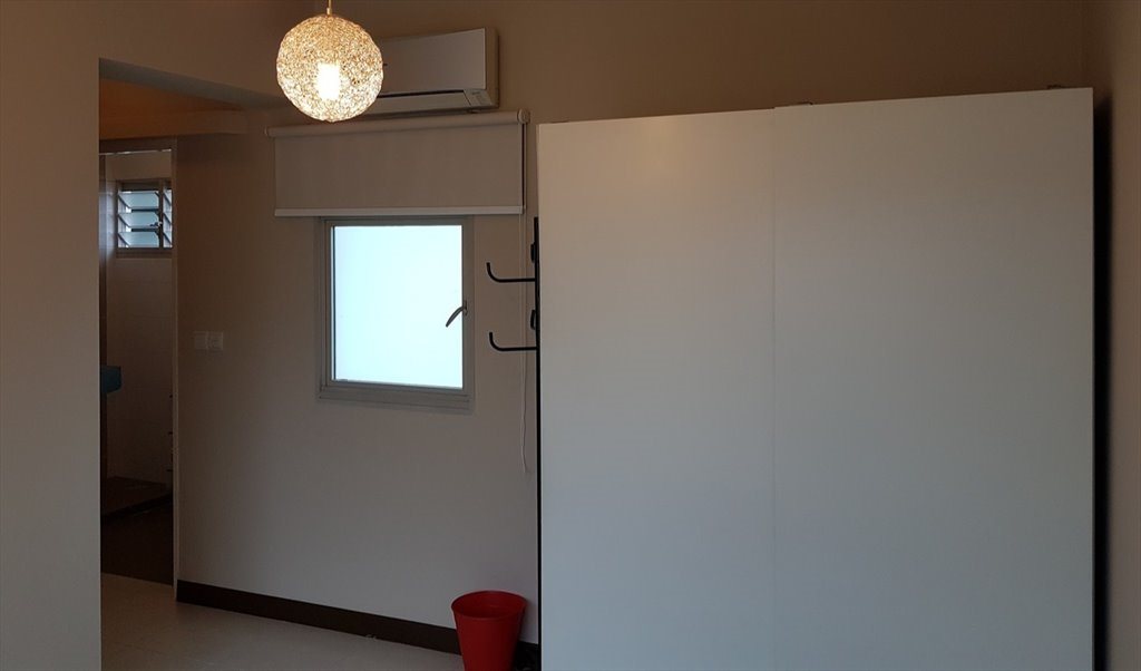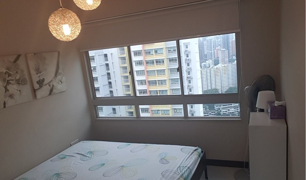 Clean and bright master bedroom to let in a 3-bedroom HDB apartment. This is a high floor flat with magnificent city views and lots of privacy with full use of kitchen and living room. This master bedroom has an attached bath. It is fully furnished with a queen bed, a wardrobe, and air-conditioning. The apartment has free fiber broadband WIFI access, a functional kitchen as well as a laundry washer and dryer. Daily housekeeping in common areas.