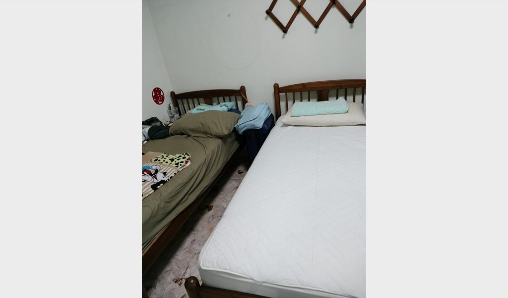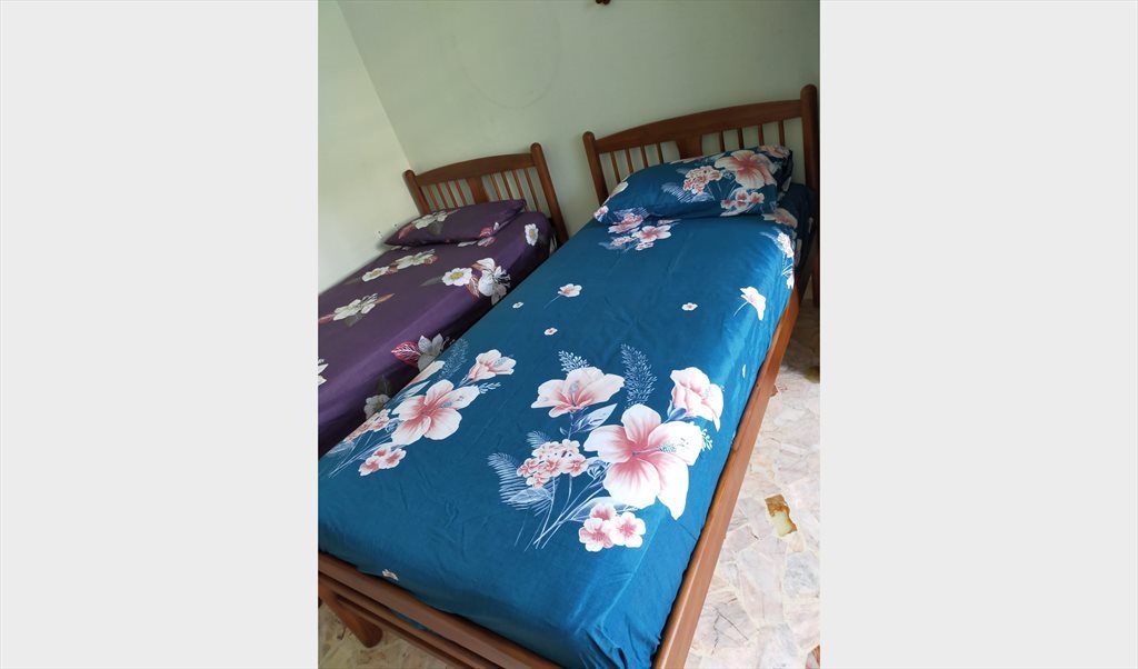 2 Single beds, wardrobe, table, chair, standing fan provided,