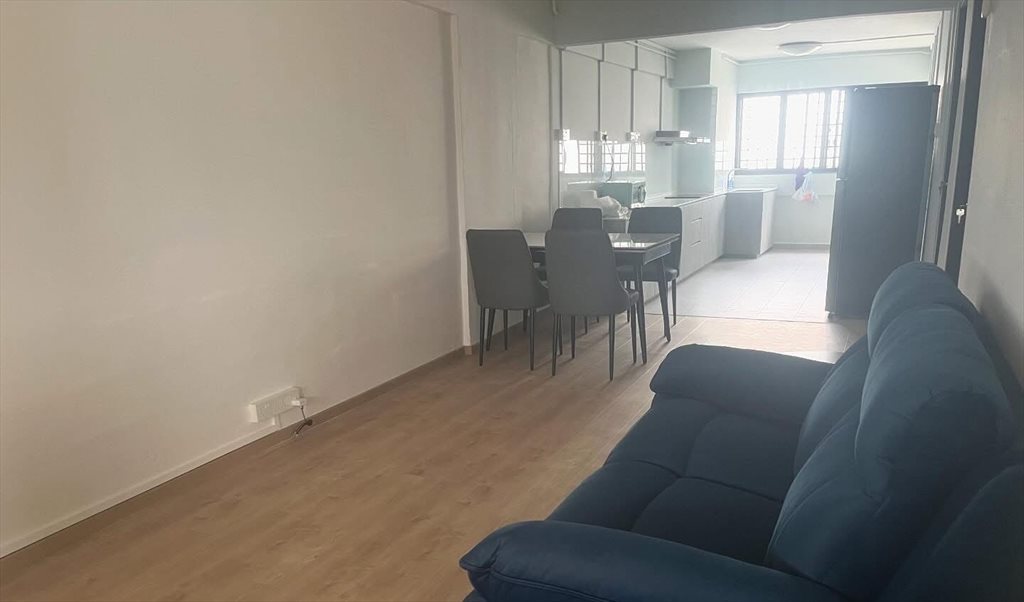 Bright and spacious common room in a high-floor HDB, well-ventilated. Peaceful and comfortable living environment.