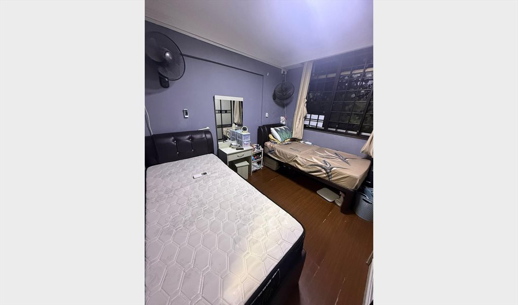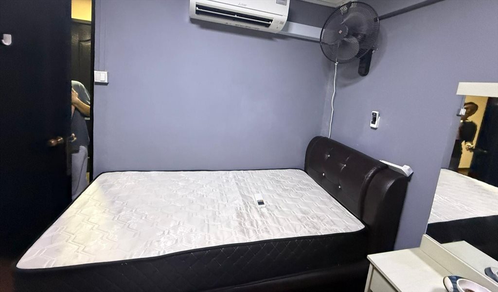 Queen size bed, build in wardrobe, dressing table, chair and standing fan provided,